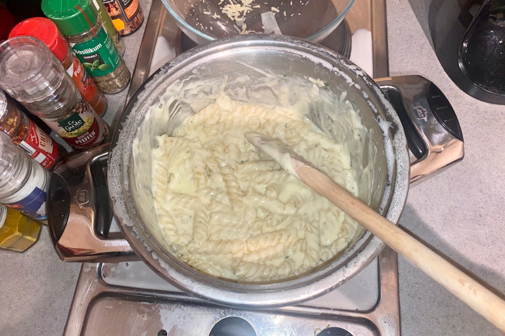 After having cooked my Fusilli in the remaining Milk for about 10 Minutes, all that was left to do was to add that Cheese.
