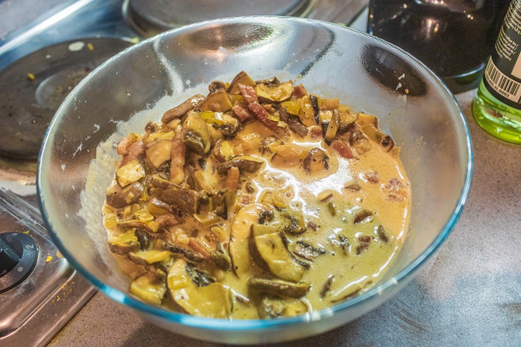 In the beginning, I had wished that I had used more Bacon, I still have some left in the Fridge after all.