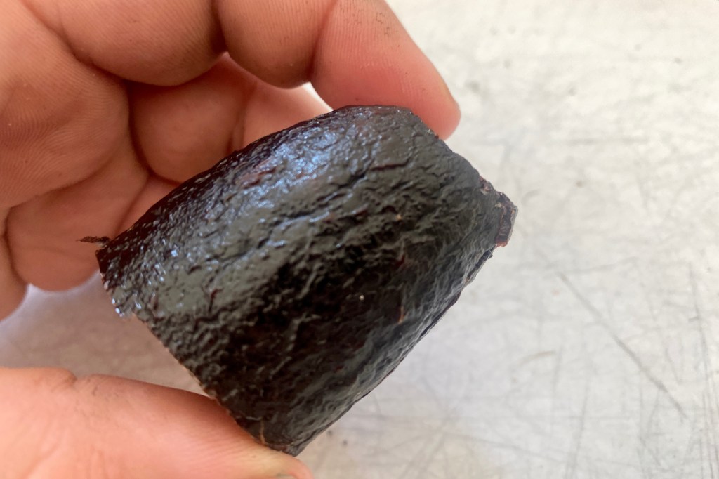 When you look at it, it actually just looks like a badly burned Sausage. It is actually completely black on the Outside.