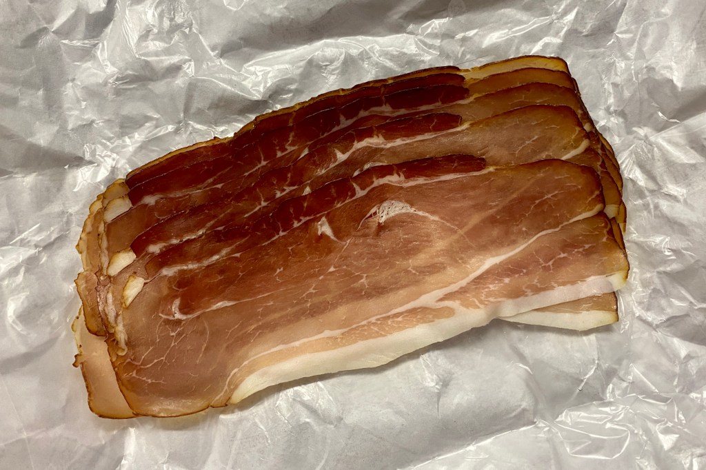 The final Step involves the Ham being cold-smoked with the Wood and Sawdust of local Conifers like Spruce. That bit takes just a few Days.