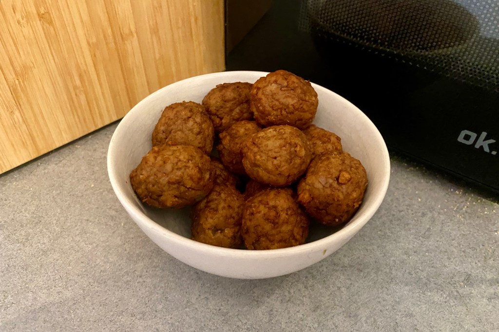 So, after arriving back Home from grocery shopping, I just had to try those vegan Köttbullar out.