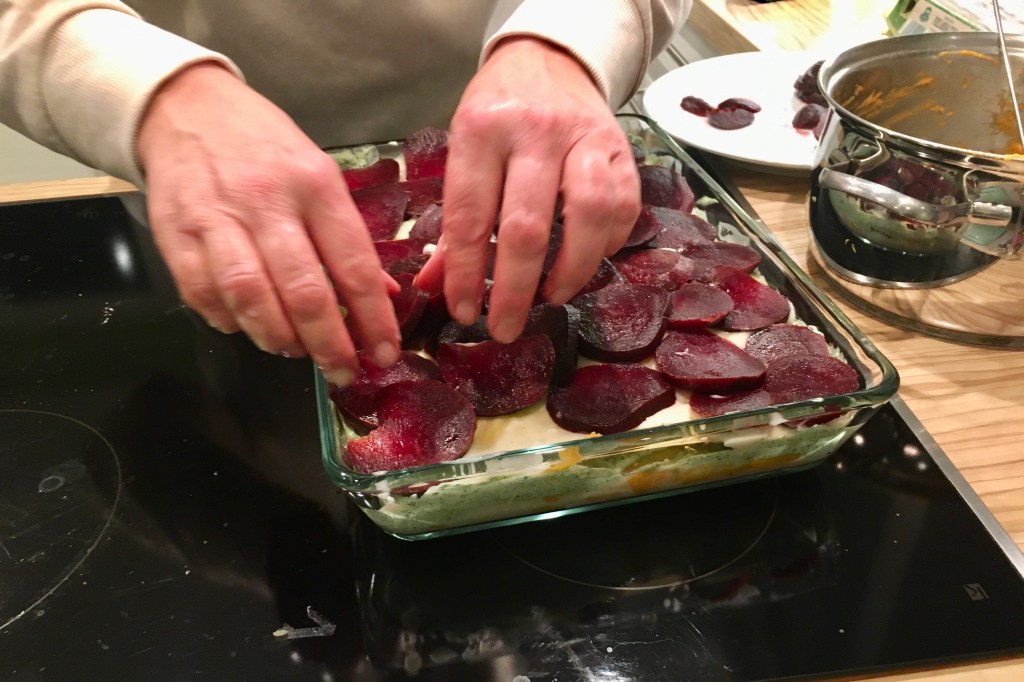 So I was obviously very happy when we actually did have the Time to get together yesterday to make an awesome veggie Lasagna with Sweet Potato, Spinach with Cream Cheese and some red Beetroots.